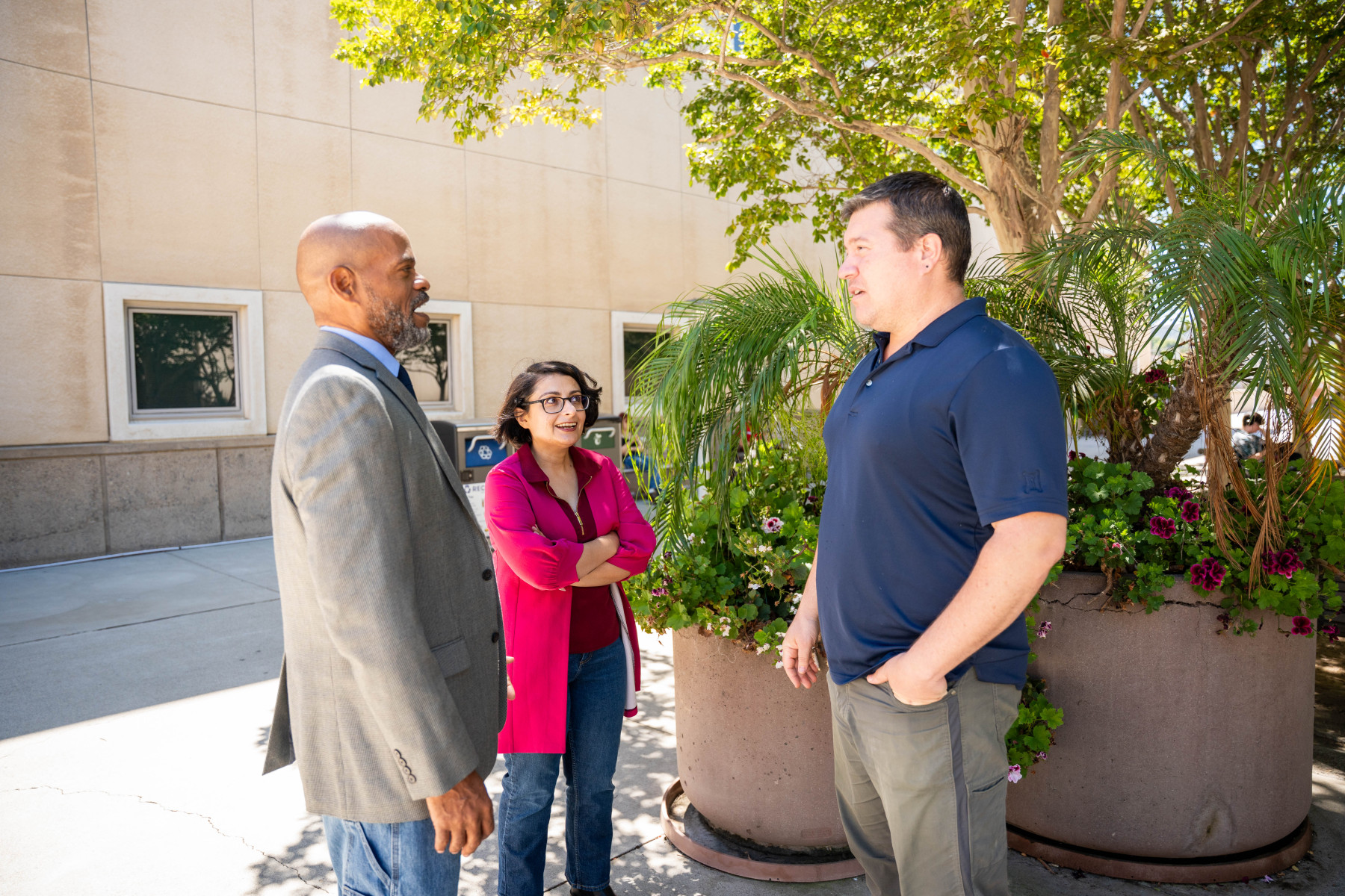 - 'It's Irreplaceable': Giant Oak Tree Saved in RelocationA giant oak tree as old as Cal State San Marcos itself was saved this month as part of a large-scale relocation project. The tree, which was planted around the time of CSUSM’s founding in 1989 and weighs 27 tons, was moved in early September from a plot outside the Arts Building to the area between Kellogg Library and Campus View Drive, near the main circle. “It’s not every day that you move a tree that size,” said Michelle Alves, a campus planner in Planning, Design and Construction (PDC) who helped supervise the project. The fate of the tree was thrown into question over the summer when Facilities Development and Management (FDM) began the construction of a new glass elevator on the perimeter of the Arts Building. Because the tree sat right next to the construction zone, the determination was that it would need to be uprooted to give it the best chance of survival. “That kind of oak tree, you could never buy one. It’s irreplaceable,” Alves said. The relocation occurred on Sept. 6 – a Saturday, to take advantage of minimal car and foot traffic on campus. Alves arrived at 5 a.m., planning to be on site for six hours; it turned out to be more than nine. In all, the project involved about 20 workers, including several from FDM and several more from an Escondido company called Big Trees Nursery. After landscapers boxed and harnessed the tree, a crane lifted it out of the ground and laid it on its side on a flatbed truck (a smaller truck after the first one proved too big to navigate the service road, causing an hour delay). On the drive northeast out of campus, the oak’s branches were so wide that they were brushing the overhang of the Arts Building and the trees outside Science Hall 2. “It looked like it was high-fiving other trees all the way down, like it was saying, ‘See you later,’ ” Alves joked. At a very deliberate, almost walking pace, the truck descended the service road to La Moree Road, re-entered campus near the Sprinter station and drove southwest on Campus View Drive to the tree’s new resting spot behind the library. Along the way, the precious cargo had a front and back escort from University Police Department vehicles. Now situated on the ground next to the main circle, the crane lifted the tree from the truck and deposited it in a pre-dug hole. Workers attached three braces to the trunk to provide support in case of wind or rain. The tree, which is about 40 feet tall and 30 feet wide, will be given vitamins and extra water in the coming weeks. “We’re setting it up for success and a long, happy life,” said Alves, adding that oak trees can live up to 300 years, making this one a relative baby. Alves said the project reflects CSUSM’s dedication to sustainability and its achievement last year of Level 1 arboretum accreditation and Tree Campus USA recognition. She also spotlighted the efforts of the university’s landscaping team, namely Raul Vaca and Ricardo Jacobo, with after-care by Isidro (Sid) Alvarez. “It was a team effort, and it took a team to pull it off,” she said. “Often, FDM is behind the scenes, like we’re the engine running the campus. But I want people to know that we do some really cool stuff.” Media Contact Brian Hiro, Communications Specialist bhiro@csusm.edu | Office: 760-750-7306
