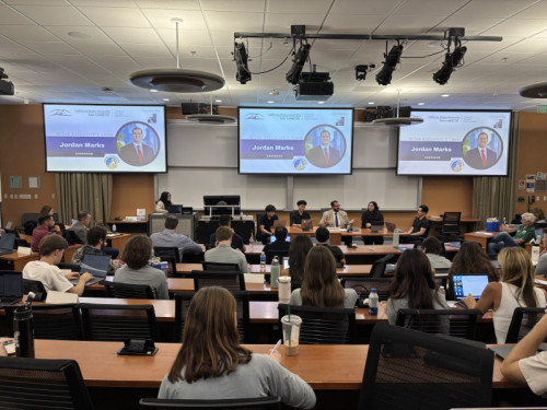 Ohio University Fellows Join CSUSM Students for Collaborative Leadership SessionStudents from Cal State San Marcos had the chance to connect with students from Ohio University during a collaborative class session that highlighted shared experience, leadership group and cross-campus engagement. The Center for Leadership Innovation and Mentorship Building (CLIMB) hosted the students from Ohio as part of its signature In the Executive’s Chair (ITEC) series. Rajnandini “Raj” Pillai, director of CLIMB and professor of management, explained that the course brings students into direct conversation with influential leaders and creates meaningful opportunities for interaction with peers worldwide. “CLIMB always believes in collaborating with other entities on campus as well as other universities, both domestic and international, especially when it pertains to our speaker series for the community or our signature In the Executive’s Chair class,” Pillai said. The Nov. 4 visit included a joint class session featuring Jordan Marks, San Diego County Assessor, as well as an informal conversation and lunch on campus. The Ohio University students spent the afternoon exchanging insights with CSUSM students about academics, career plans and student life. CLIMB was established in 2004 by CSUSM’s College of Business Administration, with the mission of fostering the development of effective leaders at the individual, team, organizational and community levels. The center focuses on promoting innovative leadership and research through educational programs and mentoring opportunities. The ITEC series brings high-level leaders from diverse industries to speak with students about topics such as communication, decision-making, ethics and professional development. Previous cohorts have included international participants, such as master’s students from Sweden who joined ITEC via Zoom. Ohio University students also visited CLIMB over the summer. During this visit, the Raymond A. Lancaster Executive Leadership Fellow, Dan Squiller, said the experience exceeded expectations. “The feedback from our students was uniformly positive,” Squiller said. “This first engagement and eating lunch on a sun-soaked CSUSM campus was the perfect way to kick off their week of sessions in San Diego. So, thank you for orchestrating our inclusion, handling the logistics, and making us feel so welcome.” Pillai said she hopes to continue the partnership and host the leadership fellows annually, noting that opportunities like these enrich the classroom experience and strengthen CLIMB’s commitment to developing leaders through connection, conversation and community. CSUSM students also reflected on the value of the exchange. “Talking with the Ohio University students during class was a really interesting experience because it showed me how, even though we go to different schools, we share a lot of the same goals and challenges,” Lysandra Lyman said. “The main difference I noticed was in the size and culture of their school, which gave them different kinds of opportunities. But overall, it made me realize how much we all relate to each other when it comes to learning, growing and preparing for the future.” Media Contact Eric Breier, Interim Assistant Director of Editorial and External Affairs ebreier@csusm.edu | Office: 760-750-7314
